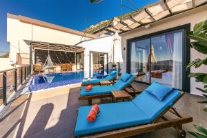 Villa Efe is the 2 bedrooms brand new luxury villa with 4 sleeps capacity.Villa Efe is one our best selection of honeymoon villas category.Villa Efe is a luxury accommodation located in a quiet area of Kalkan Kordere area. Surrounded by wild Mediterranean plants, Honeymoon Villa Efe offers a private and peaceful environment for your Turkish getaway. When entering this exquisite property,you will see amazing sea view,wall to fall glass doors,uninterrupted sea views and more....